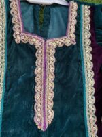 Our 4-Piece Pure Falcon Velvet Set features a stunning two-tone kalidar shirt, beautifully embellished with handmade lace work and a heavy statement neckline.