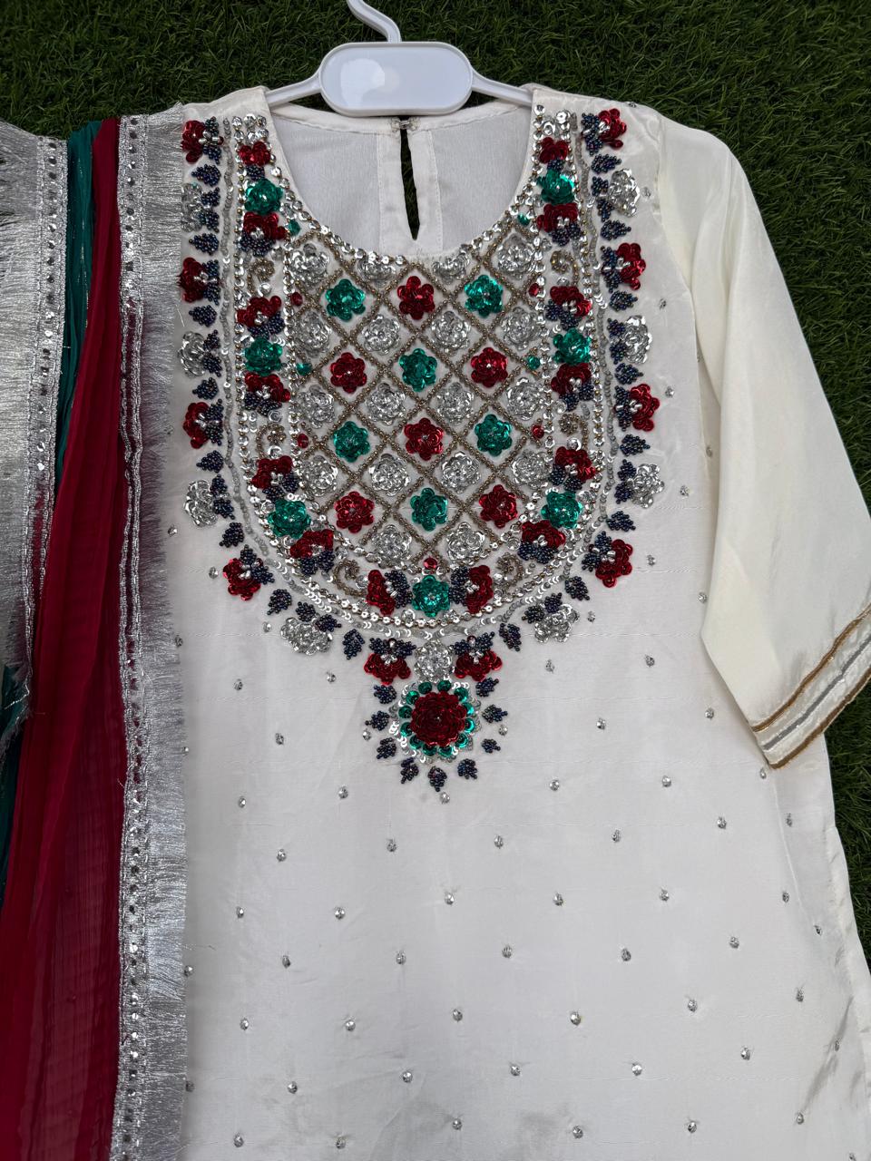 4piece pure chiffon luxury set (Dhani Green & Multi) ₨5,000.00 – ₨7,000.00