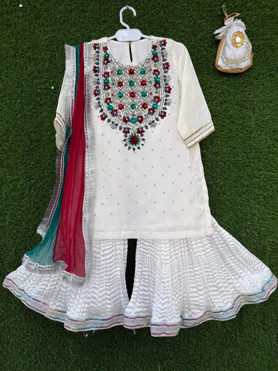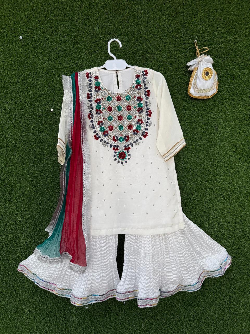 Adorable outfits for the tiniest trendsetters! 💕👶   Ghar ki shadi (2023)🌸   Pure Rawsilk Gotta Patti Shirt Emblisshed With