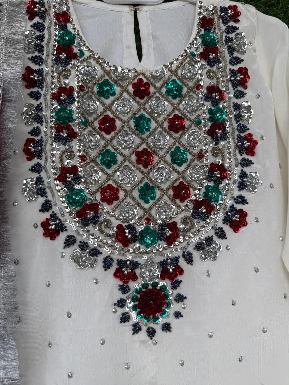Ghar Ki Mehndi (Volume 2) Bring festive elegance to life with our 4pc pure chiffon luxury set. Heavily sequined chiffon