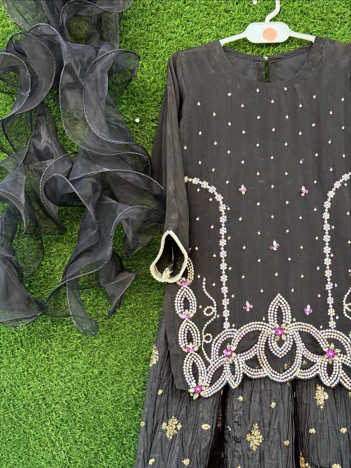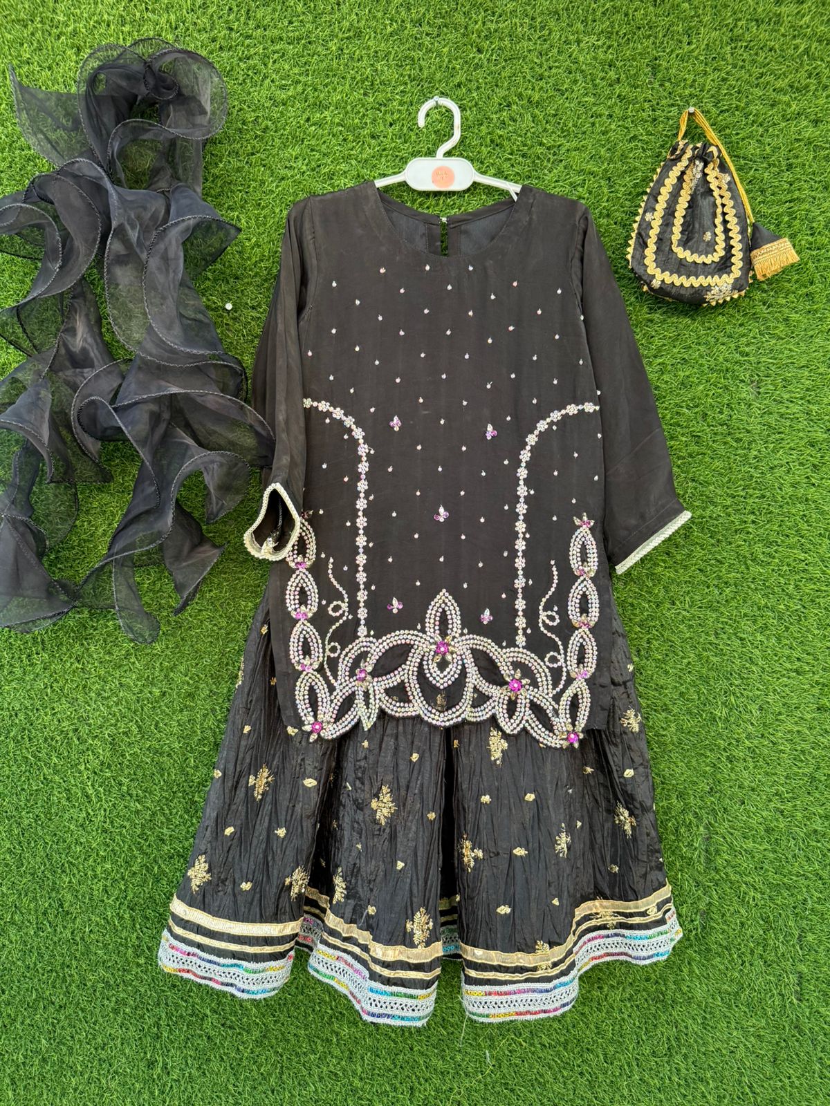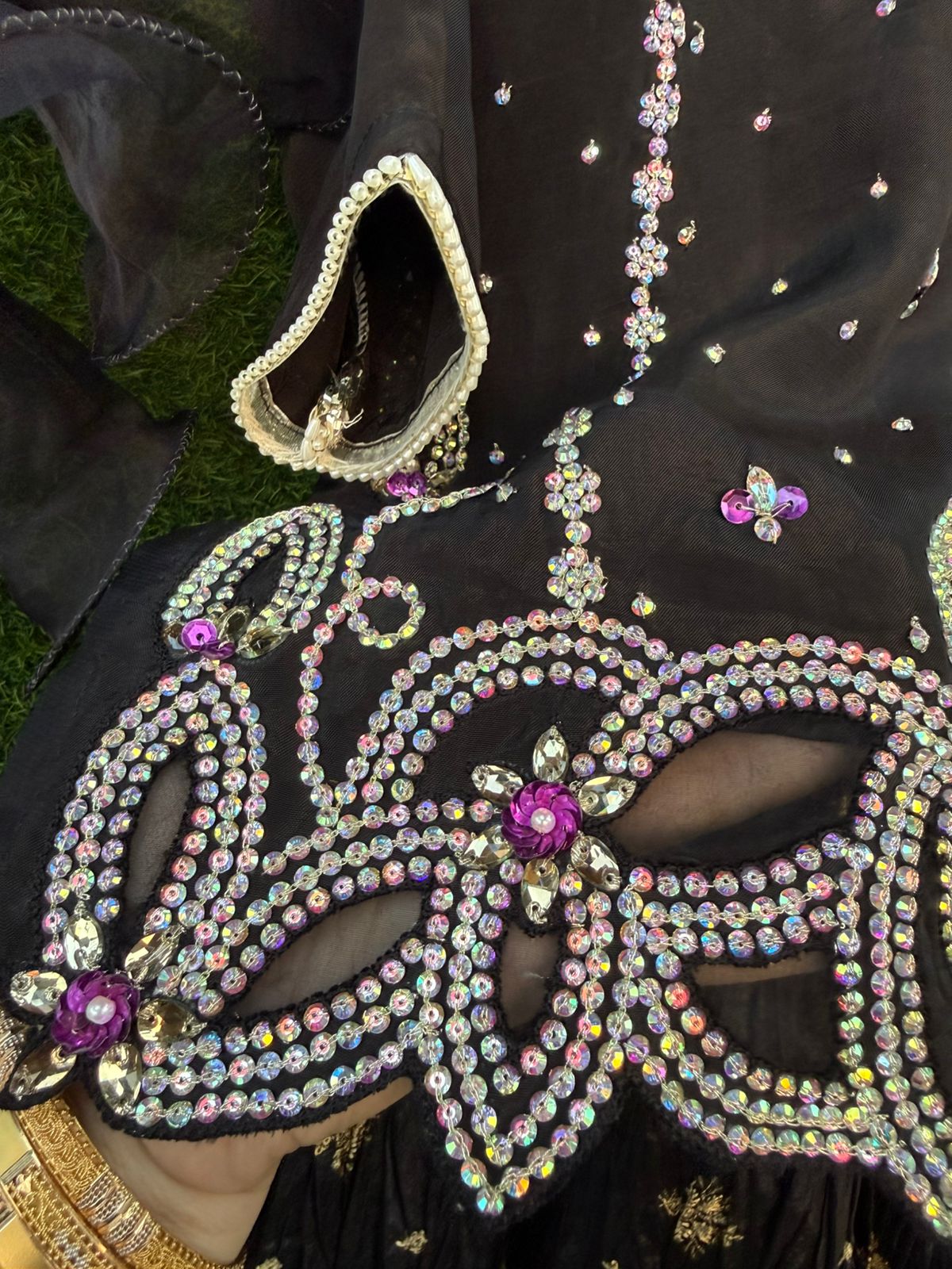 Dressed in tradition, our little princess shines in her timeless attire! Festive Collection 2023 Traditional yet stylish🩷 black chickenkari afghani