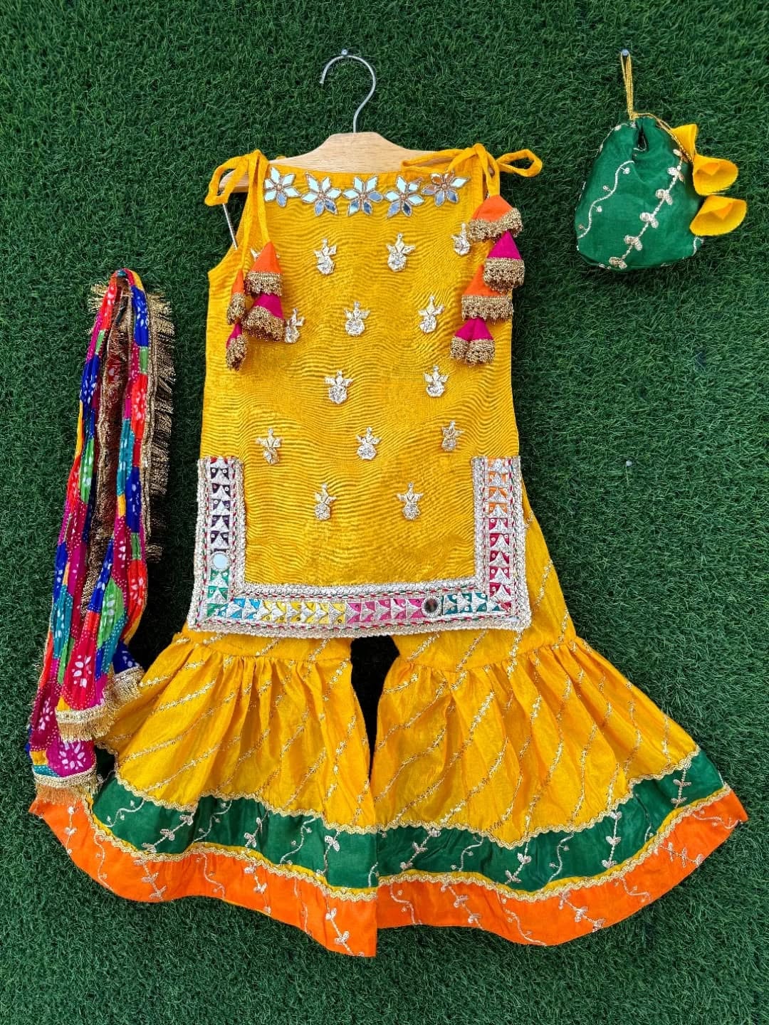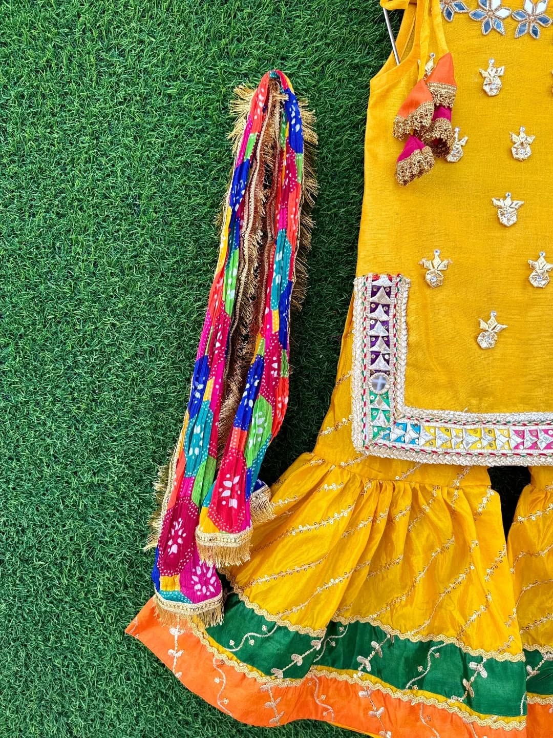 Home Ghar ki Shaadi Festive Collection Pure yellow raw silk shirt with gharara!