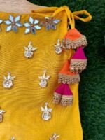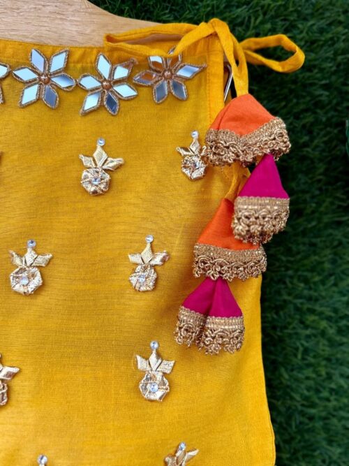 💛 Pure yellow raw silk shirt adorned with handmade gotta work & kinari lace detailing.