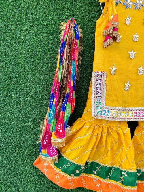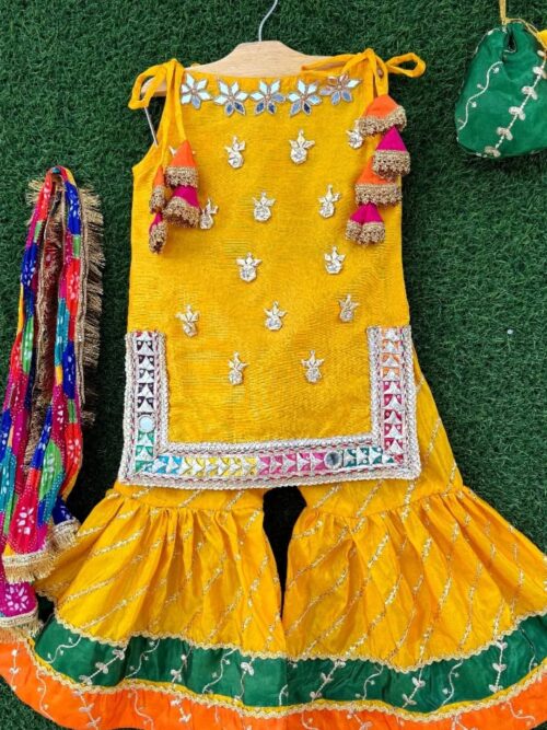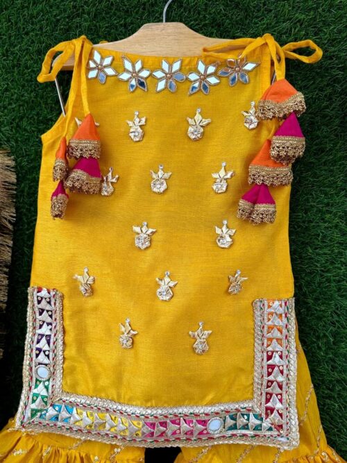 Be the first to review “Pure yellow raw silk shirt with gharara!” Cancel reply